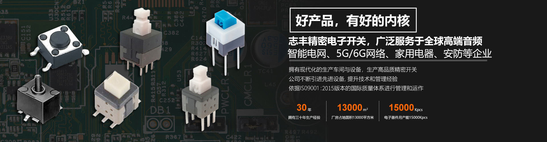 鎴戜滑鏄腑鍥界洰鍓嶆渶鍏瘋妯$殑寰瀷寮鍏沖強琛ㄩ潰璐磋寮?SMT)寰瀷寮鍏充笓涓氬埗閫犲伐鍘備箣涓錛?993騫村垱绔嬩簬棣欐腐錛?997騫村湪鍥藉唴寮璁懼埗閫犲伐鍘傦紝鐩墠鎷ユ湁涓滆帪鐢熶駭鍩哄湴鍙婂箍瑗跨帀鏋楃敓浜у熀鍦幫紝涓昏鐮斿彂銆佺敓浜т綆鐢墊祦杞昏Е寮鍏熾佹寜閿紑鍏熾侀槻姘村紑鍏崇瓑錛屼駭鍝佸箍娉涘簲鐢ㄥ湪錛?G緗戠粶鎶鏈丄I鎶鏈駭鍝?wifi6,鏃犱漢鏈虹瓑銆傝繙紼嬫櫤鑳芥帶鍒?鏅鴻兘鐢佃〃浠〃銆佸畨闃叉櫤鑳界郴緇熴傞煶鍝嶈鍚澶?楂樼駭闊沖搷銆佽垶鍙拌澶囧強褰曢煶璁懼銆佽皟闊沖彴絳夈傛櫤鎱х敓媧葷數鍣?鐢靛姩鐗欏埛銆佷釜浜虹編瀹逛繚鍋ヤ華鍙婃櫤鑳芥礂琛f満銆佹櫤鑳藉潗渚垮櫒絳夈?/i> 鏌ョ湅璇︽儏